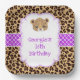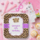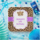 Leopard Print Purple Quatrefoil Birthday Party Paper Plate