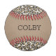 Textured Linen Leopard Print Pattern in beige, tan, grey, Solid tan with NAME in Black. Red Baseball Thread. Easy to personalise text, text colour. Great for ANY Baseball Lover, Sports Fan, Party Favour, Family Reunion game, Team, Event. Modern, Chic, Fun. Mix and match entire Animal Print / Sports / Baseball Collections by TMCdesigns.