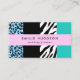 Leopard Print, Zebra Print, Animal Print, Blue Business Card