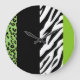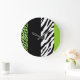 Leopard Print, Zebra Print, Animal Print, Green Large Clock