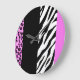 Leopard Print, Zebra Print, Animal Print, Pink Large Clock