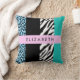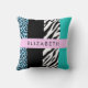 Leopard Print, Zebra Print, Blue, Your Name Cushion