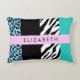 Leopard Print, Zebra Print, Blue, Your Name Decorative Cushion