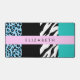 Leopard Print, Zebra Print, Blue, Your Name Desk Mat