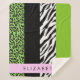 Leopard Print, Zebra Print, Green, Your Name Sherpa Blanket