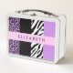 Leopard Print, Zebra Print, Purple, Your Name Metal Lunch Box