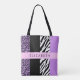 Leopard Print, Zebra Print, Purple, Your Name Tote Bag