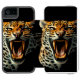 Fierce Powerful Leopard Roaring attack portrait close up with long fangs. Original vector illustration isolated on white Copyright BluedarkArt TheChameleonArt.