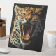 Fierce Powerful Leopard Roaring attack portrait close up with long fangs. Original vector illustration isolated on white Copyright BluedarkArt TheChameleonArt.