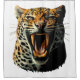 Fierce Powerful Leopard Roaring attack portrait close up with long fangs. Original vector illustration isolated on white Copyright BluedarkArt TheChameleonArt.