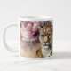 The image features a beautifully detailed illustration of a beautiful leopard surrounded by an array of vibrant, blooming flowers. The leopard, with its distinctive spotted fur and expressive eyes, is positioned prominently in the centre, creating a striking focal point. The surrounding flowers, predominantly in shades of pink and purple, add a soft, whimsical touch to the composition. The background includes splashes of gold and pastel colours, enhancing the overall dreamy and artistic feel of the image. This captivating blend of wildlife and floral elements makes the image both visually appealing and unique, perfect for products that aim to evoke a sense of elegance and natural beauty.