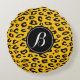 Leopard rosettes custom monogram round throw. Personalised wild animal spots pattern monogrammed with name initial letter. Elegant typography. Exotic home decor. Yellow or custom colour.