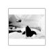 A leopard seal is lying on a floating ice sheet in Antarctica.