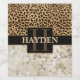 Brown leopard spots and rich coloured marble on the bottom. The centre is left for personalisation / personalise with a surname or last name, and monogram initial. Elegant and stylish design with a trendy wild cat skin pattern that looks vintage and antique.
