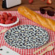 Teal leopard print paper plate. This item is part of a collection that is customisable.