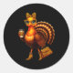 Leopard Turkey Drinking Coffee Thanksgiving Women Classic Round Sticker