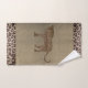This majestic leopard looks bold amid the brown tan earthy back drop. Animalistic and wild! The leopard print border ties it in to a fabulous finish.