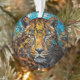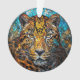 Captivating leopard mosaic made of vibrant tiles blending warm orange and cool blue hues, portraying artistic skill and attention to detail. Featured design integrates texture and animal elements beautifully.