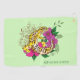 A leopard gecko sits amongst flowers and henna against a backdrop of green