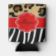 Show off your style in a fun way with this black and red leopard and zebra print personalised koozie.