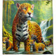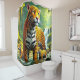 This shower curtain has a leopard art on it.