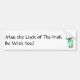 Durable 4mil thick vinyl bumper sticker, won't peel off. Water resistant inks won't run in the rain or fade in the sun. 27.9cm x 7.6cm - with a leprechaun motif and the message, 'May the Luck of the Irish Be With You!'