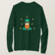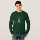 Leprechaun Clover Shamrock Patrick's Day long sleeve T-shirt. A festive St. Patrick’s Day-themed t-shirt featuring a illustration of a cheerful man. The man wears a green hat with a black band and a gold buckle and has a bright red beard. His face has a friendly expression with a smile. Shamrocks surrender the man.