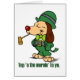 Leprechaun dog with a pipe and green clothes wishing you "Top 'o the mornin' to ye."