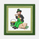 Adorable Irish Leprechaun smoking his pipe while he rests beside his pot of gold. Delightful design for St. Patrick's Day or year round enjoyment.