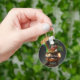 A keychain with a leprechaun carrying a pot of gold with a rainbow behind him. You can edit or personalize the text. On the back is a four leaf clover. Matching products available.