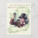 Send your loved ones a little green this year. This vintage St. Patrick's Day print depicts a leprechaun holding shamrocks. The island of Ireland in the background.