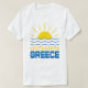 Enjoy this summer with this Leptokarya, Greece sunshine and sea waves men's white T-shirt. This design features sunshine and water waves with Leptokarya in Greek style font with a large blue word Greece.