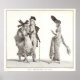 Reproduction of an Engraving by By Carle Vernet ( French, 1758 - 1836). Two Merveilleuses, accompanied by an "Incroyable" take a stroll on a Paris street. They wear the exaggerated hats and hairstyles of the period. After the fall of Robespierre and the end of the Terror, a wave of relief and of fashion giddiness swept Paris. Young men known as "Incroyables" and their female counterparts "Les Merveilleuses" rejoiced in adopting a wildly exaggerated look which flouted the social conventions of the time. They were the ultimate dandy set, the golden youth of their time, arrogant and outrageous. (See Attributes of an Incroyable, opposite for more on their attire). Some of the Incroyables, known as Muscadins (because of their heavy musk perfume), had a dark side. They organised into bands and roamed the streets using their bludgeons and canes to harass the revolutionary Jacobins.