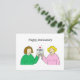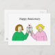 Two women toasting each other with glasses of champagne and the words 'Happy Anniversary'.