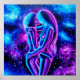Lesbian kiss in blue and purple fluorescent and phosphorescent glow in the dark painting