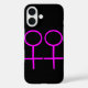 This awesome iPhone case is designed for lesbians. It features two pink female symbols standing side by side. The background is black.