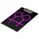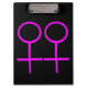 This awesome clipboard is designed for lesbians. It features two pink female symbols standing side by side. The background is black