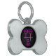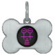 This awesome pet tag is designed for lesbians. It features two pink female symbols standing side by side. The background is black and there is customisable pink text inside each of the symbols to put names. There is more custom text below the figures that reads "this doggie has two mommies"