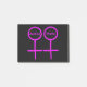 This awesome pad of post it notes is designed for lesbians. It features two pink female symbols standing side by side. The background is black and there is customisable pink text inside each of the symbols to put names.