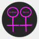 This lovely sheet of round stickers is designed for lesbians. It features two pink female symbols standing side by side. The background is black and there is customisable pink text inside each of the symbols to put names. You can now seal all your envelopes with this lovely sticker to give your mail a personal touch, or stick them on presents to your lesbian friends as personalised gift tags.