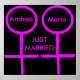 This lovely poster is designed for lesbians. It features two pink female symbols standing side by side. The background is black and there is customisable pink text inside each of the symbols to put names. It says "just married" in pink text between the two symbols. This poster is for putting up at wedding receptions and parties to celebrate the marriage of a lesbian couple. The poster is available in several different sizes, this being the largest.