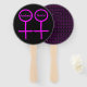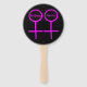 This awesome hand fan is designed for lesbians. It features two pink female symbols standing side by side. The background is black and there is customisable pink text inside each of the symbols to put names.