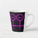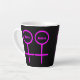 This awesome latte mug is designed for a lesbian wedding but the text on the back is fully customisable so they can be used for other events such as coming out or engagement parties. The design features two pink female symbols standing side by side. The background is black and there is customisable pink text inside each of the symbols to put names.