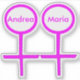 This awesome shaped sticker is designed for lesbians. It features two pink female symbols standing side by side. The background is black and there is customisable pink text inside each of the symbols to put names.