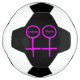 This awesome soccer ball is designed for lesbians. It features two pink female symbols standing side by side. The background is black and there is customisable pink text inside each of the symbols to put names.