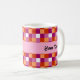Personalised mug with a chequerboard seamless pattern in the colours of the lesbian pride flag; orange, white, and pink pride design; with custom text template for your name or message