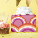 Wrapping paper with a seamless pattern with rainbows in the colours of the lesbian pride flag. Orange, white, and pink rainbow design