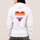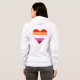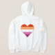 Hoodie with a heart design in colours of the lesbian pride flag; orange, white, and pink design