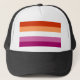 The "pink" lesbian flag consists of six shades of red and pink colors and a white bar in the center. The original design, known as the lipstick lesbian flag, includes a red kiss and was introduced in the weblog This Lesbian Life in 2010. Both the "pink" and lipstick lesbian flags represent "homosexual women who have a more feminine gender expression".