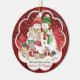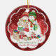 For your Sister and Sister-in-Law, a fun Christmas ornament. Two cute snow women are pictured Christmas shopping. Both wearing woollen hats and scarves, one in rainbow colours, the adorable illustration depict them surrounded by presents and bags and giggling at the bill they are holding in their hands. This cute lesbian ceramic ornament can be personalised with their names and date on the front, and your own greeting on the back.